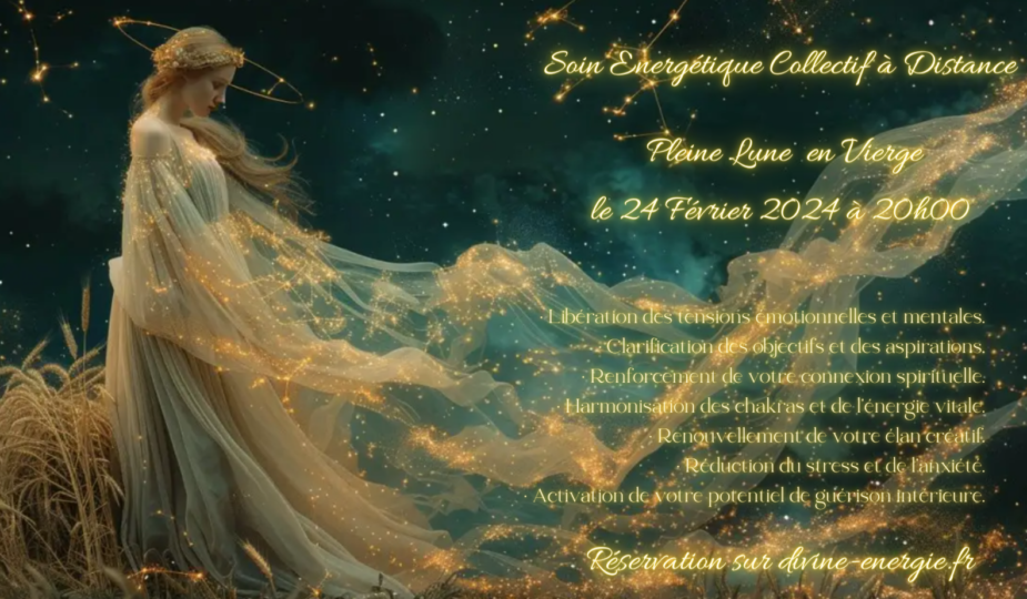 🌟 Comment participer : Inscrivez-vous sur https://calendly.com/divine-energie/soin-pleine-lune . Vous n’avez pas besoin d’être disponible à 20h le 24 février. Le soin est programmé pour être efficace indépendamment de votre présence physique. Vous recevrez les bienfaits à un niveau énergétique, où que vous soyez.