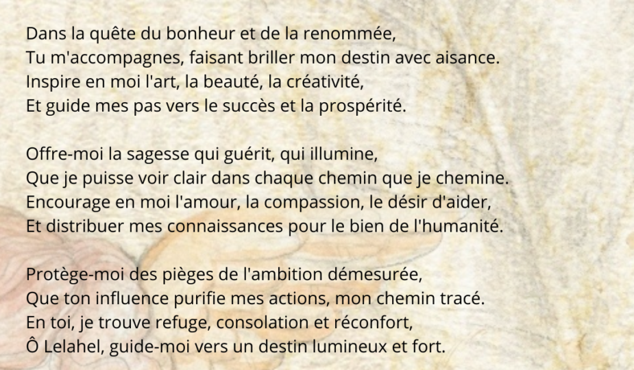 Ô Lelahel, guide-moi vers un destin lumineux et fort.