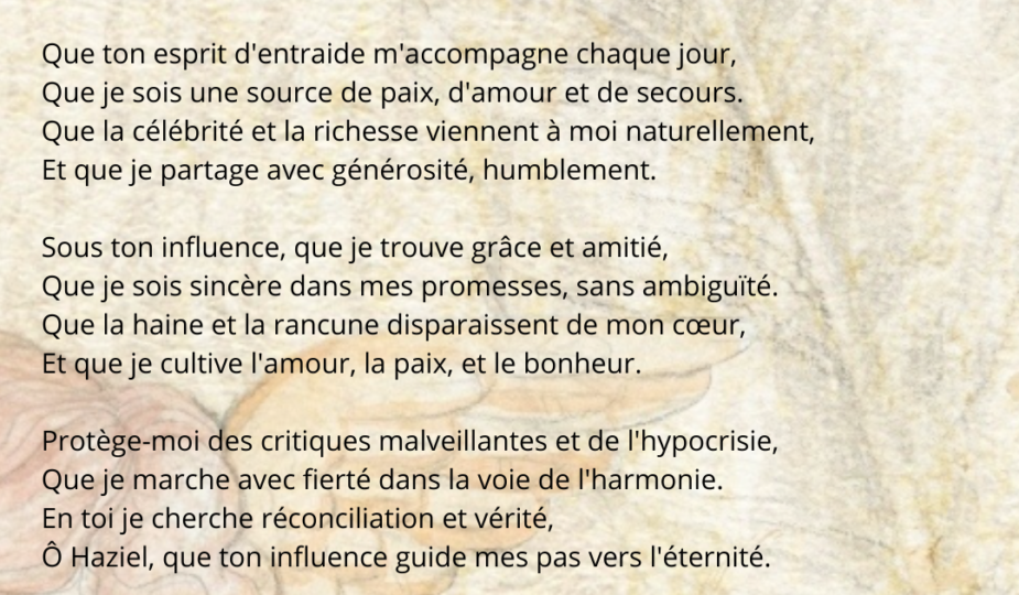 Ô Haziel, que ton influence guide mes pas vers l’éternité.