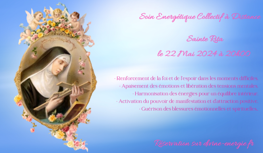Réservez dès maintenant votre place pour cette expérience inspirante de guérison et de connexion divine en cliquant sur le lien suivant : https://calendly.com/divine-energie/soin-sainte-rita