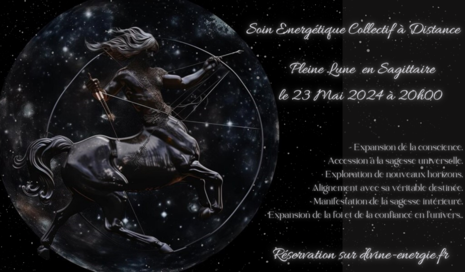 La Pleine Lune en Sagittaire approche Ă grands pas, et je suis ravie de vous inviter Ă participer Ă un soin Ă©nergĂ©tique collectif Ă distance, axĂ© sur l’expansion de votre perspective, la libĂ©ration des limitations mentales et le soutien Ă votre quĂȘte spirituelle pendant cette phase lunaire idĂ©ale pour embrasser la sagesse du Sagittaire et explorer de nouveaux horizons.