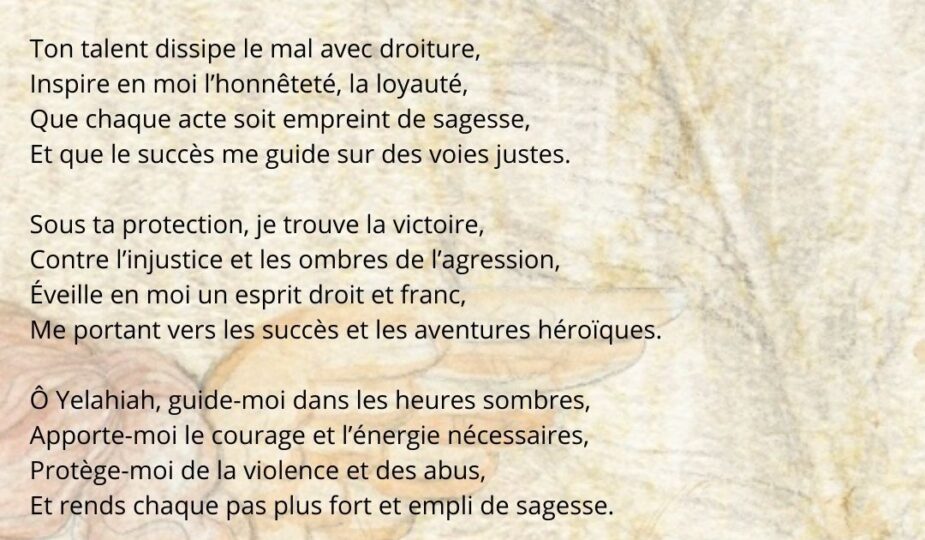 Invoquez Yelahiah pour obtenir courage, clarté et justice dans les moments critiques, et pour surmonter les obstacles avec force et sagesse.