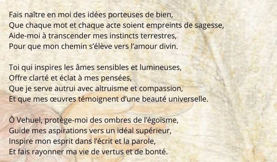 Ô Vehuel, guide de l’âme noble et généreuse,