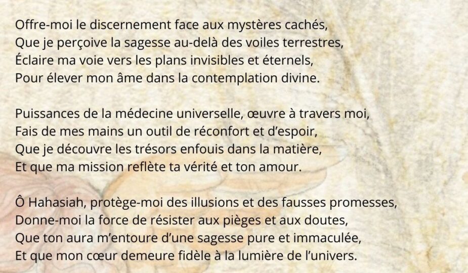 Invoquez Hahasiah pour approfondir votre compréhension de l’univers, accéder à des savoirs cachés, et obtenir clarté et protection face aux énergies négatives.