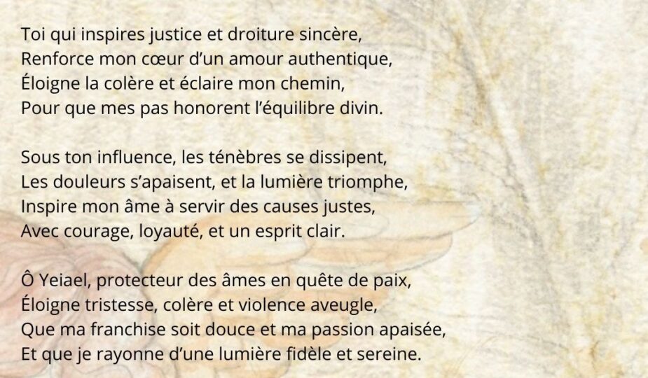 Invoquez Yeiael pour renforcer votre paix intérieure, clarifier votre esprit et surmonter les énergies négatives.