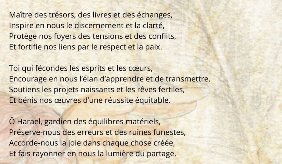 Invoquez Harael lorsque vous avez besoin de clarté intellectuelle, d’harmonie familiale, de prospérité et de stabilité matérielle. Vous pouvez aussi le prier pour développer votre amour de l’instruction et réussir dans vos projets.