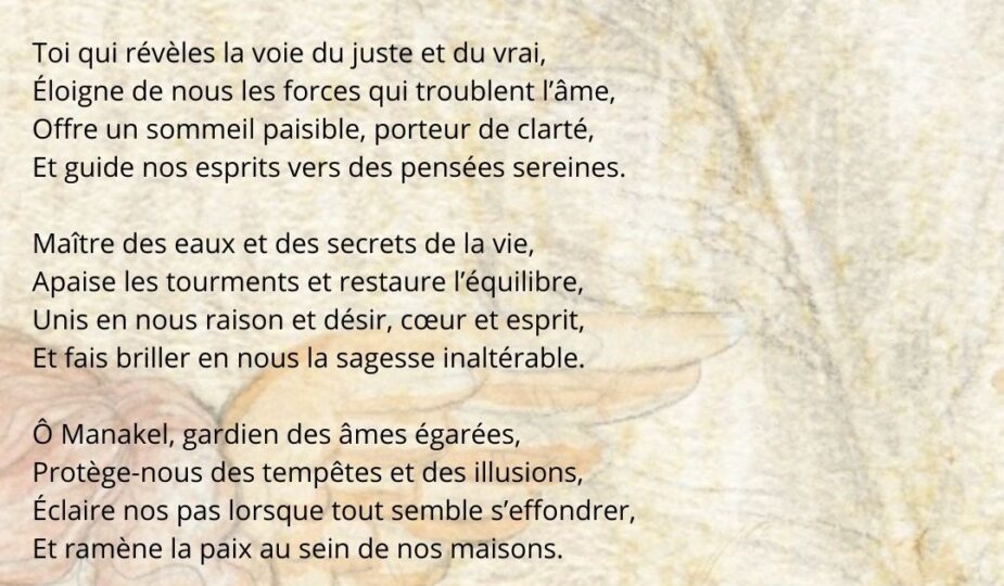 Invoquez Manakel lorsque vous avez besoin de clarté dans vos choix, de guérison intérieure, ou pour restaurer la paix dans votre vie.